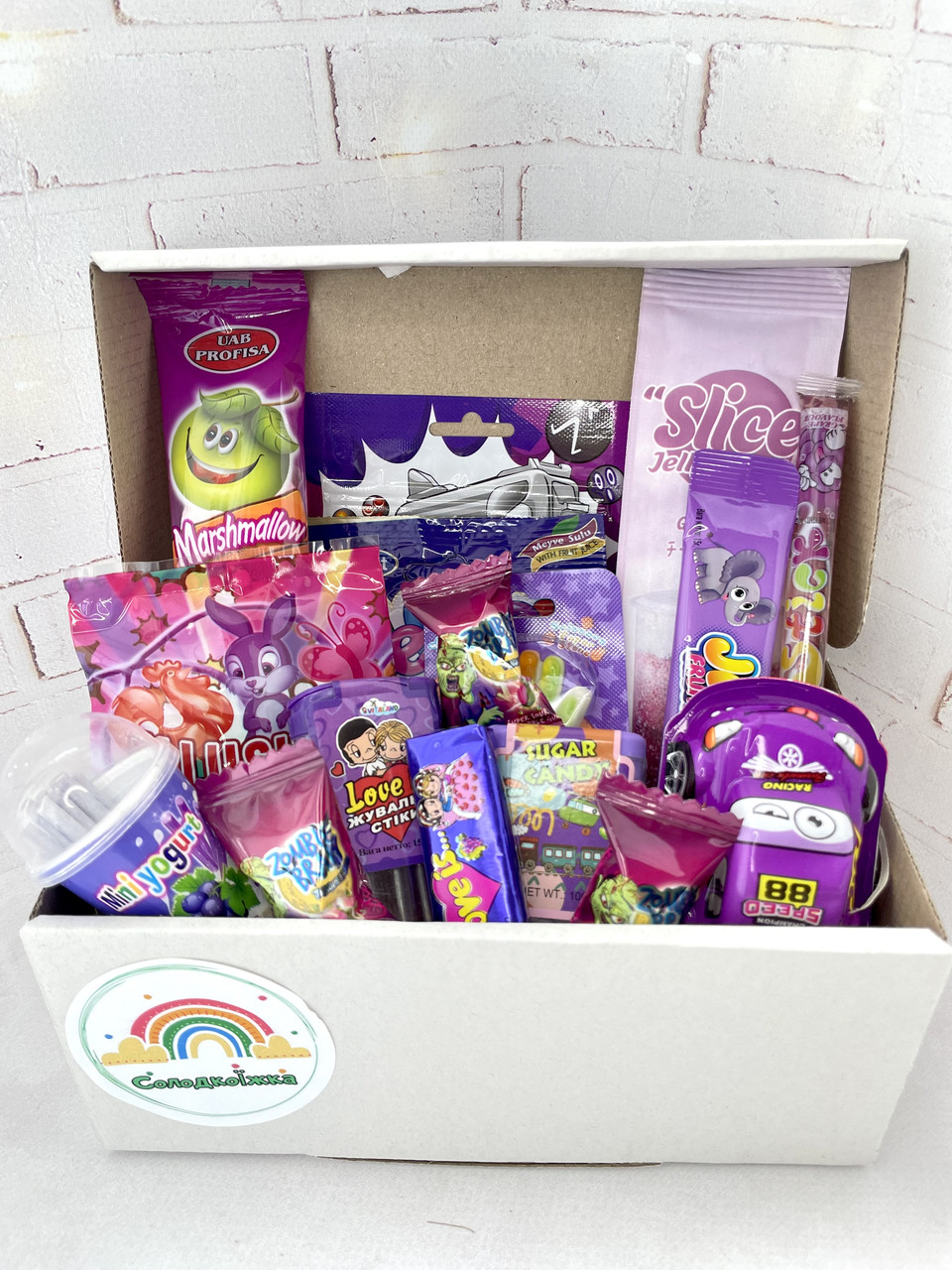 Дитячий солодкий подарунок, Світ бокс з сюрпризом, Бузкова коробка солодощів для дитини