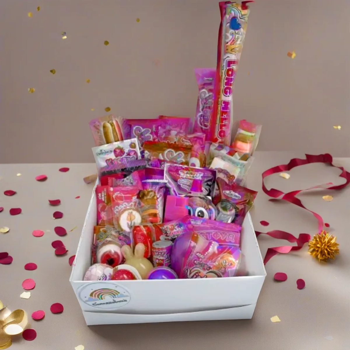 Цей подарунковий бокс – не тільки смачний сюрприз, а й справжній калейдоскоп веселки та радості. Він чудово підходить для свят, дитячих вечірок та особливих моментів, наповнених веселощами та посмішками.