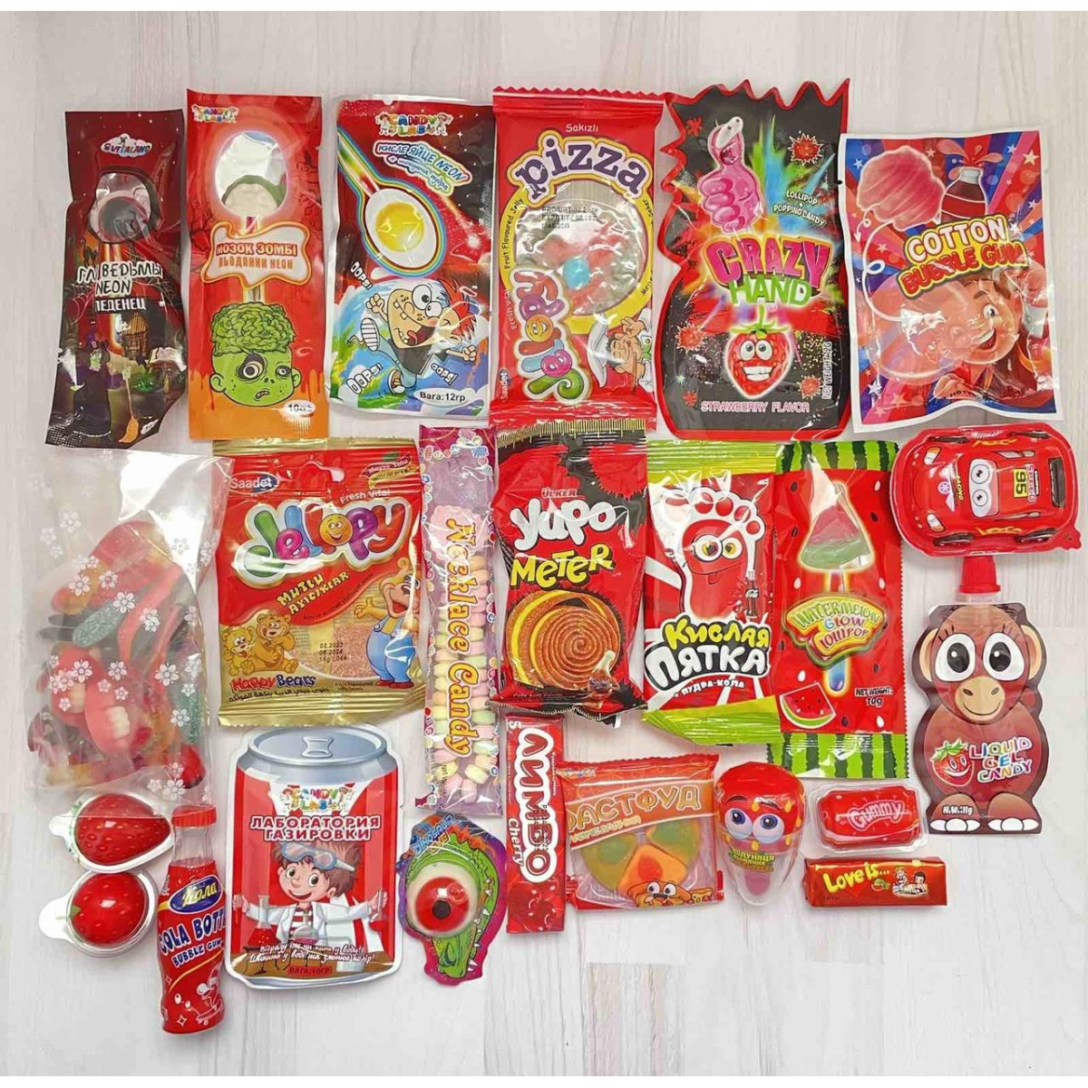 Коробка солодощів для дівчинки, Дитячий солодкий подарунок, Бокс із ласощами червоного кольору