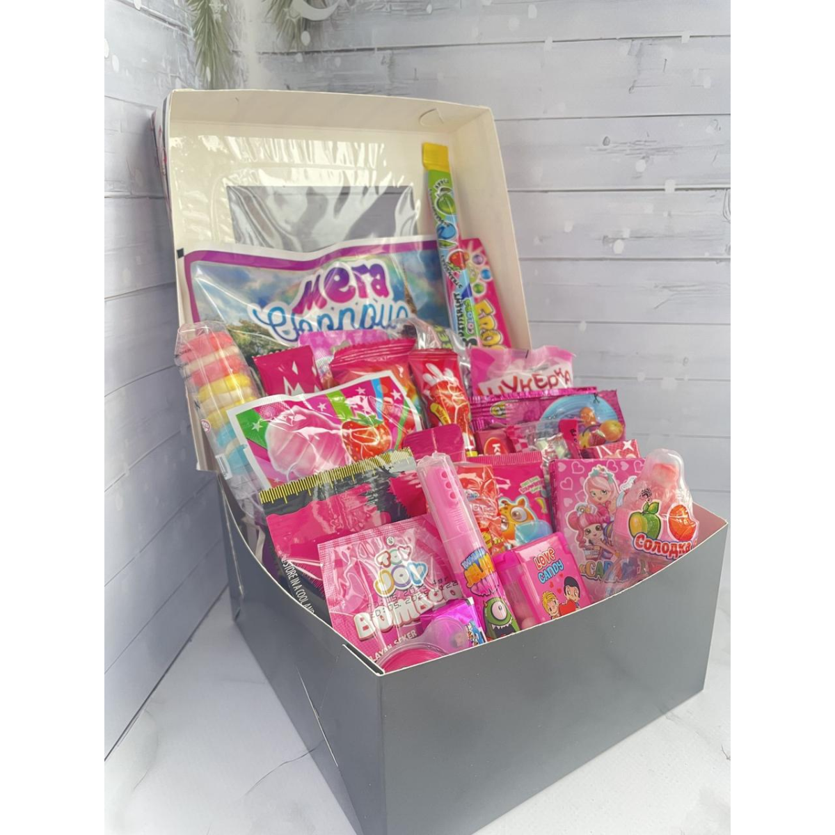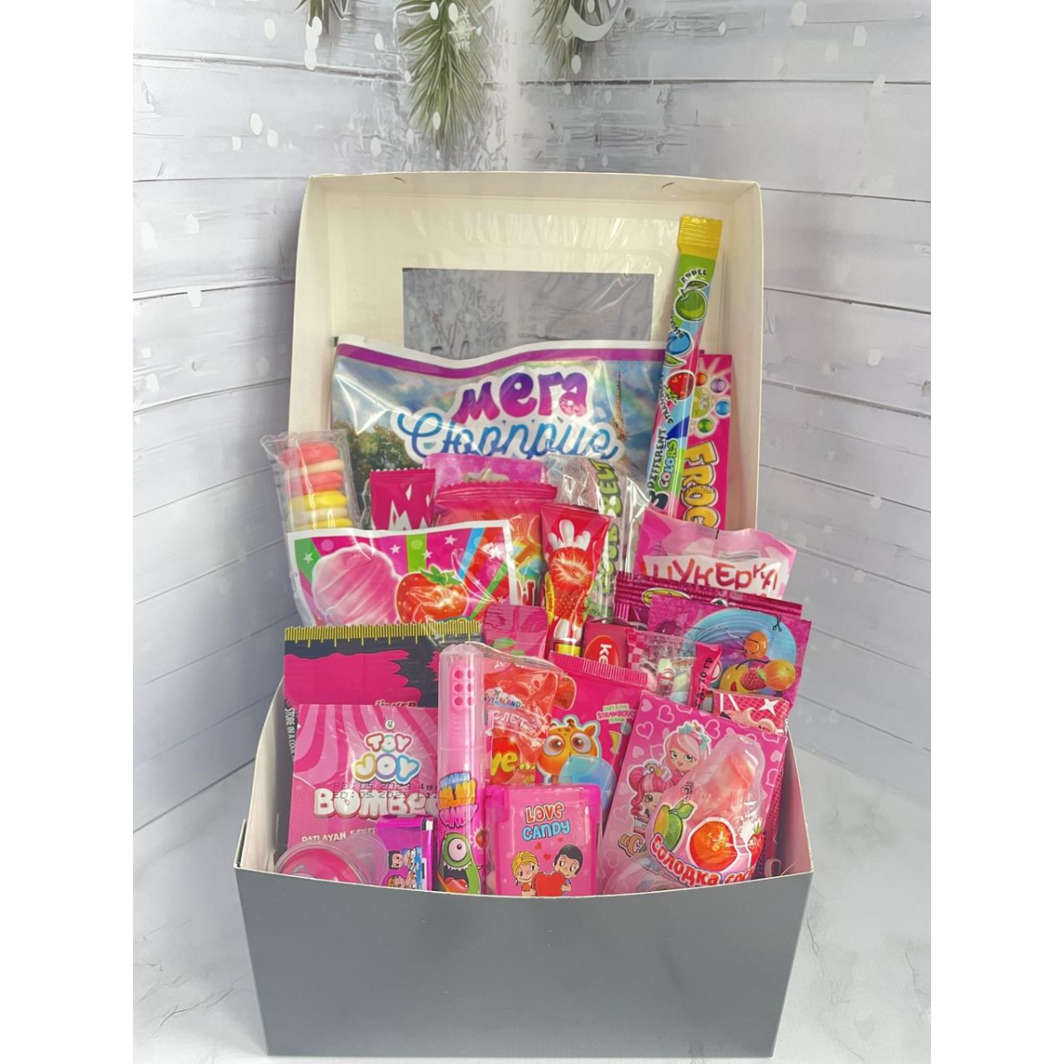Подарунок для дівчинки великий рожевий з іграшкою, солодкий бокс для свята для дитини