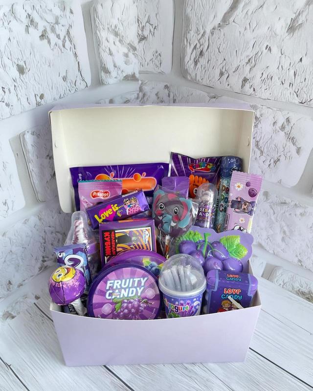 Солодкий подарунок для дівчинки, бузковий бокс для ласуна, подарунок на дитяче свято