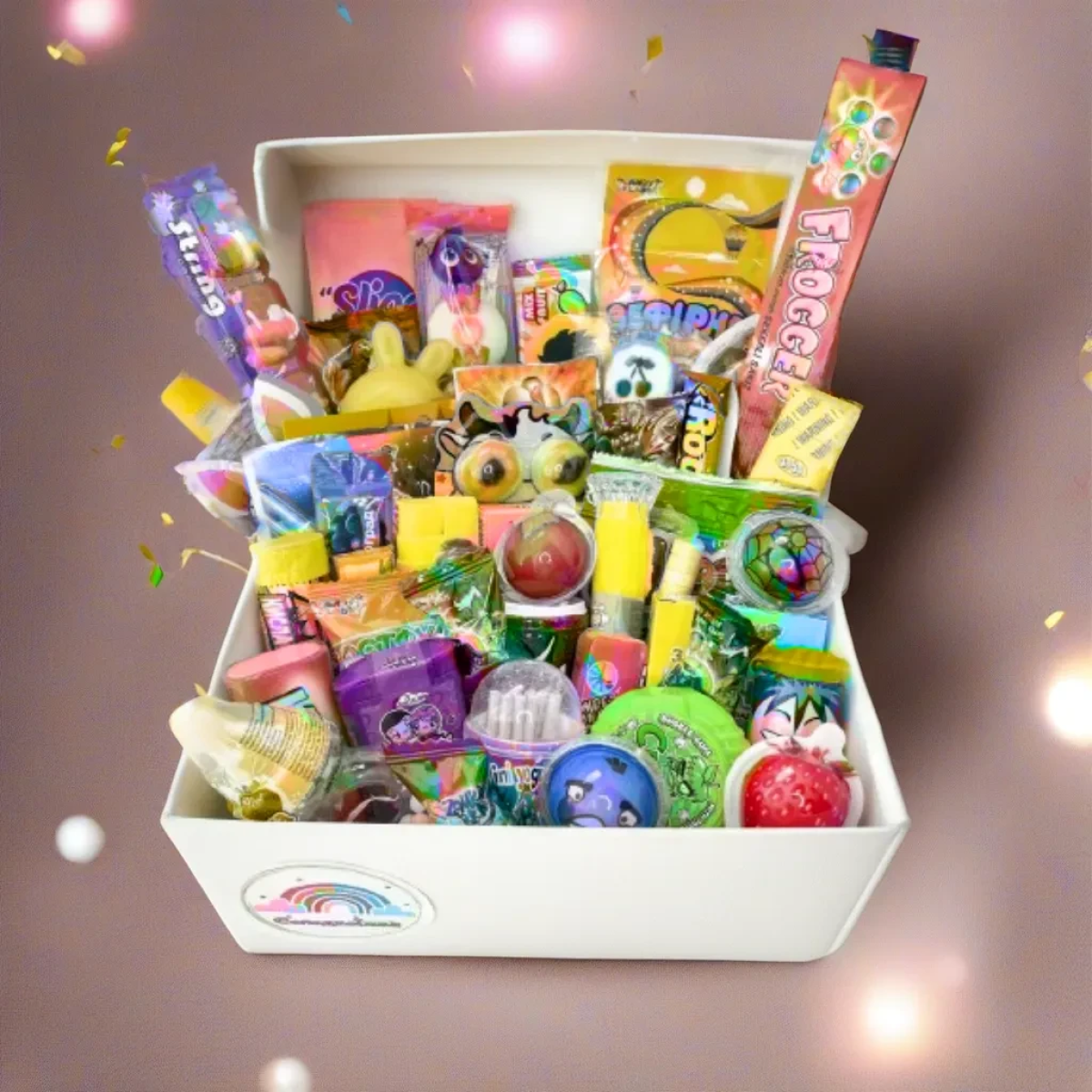 Цей подарунковий бокс – не тільки смачний сюрприз, а й справжній калейдоскоп веселки та радості. Він чудово підходить для свят, дитячих вечірок та особливих моментів, наповнених веселощами та посмішками.