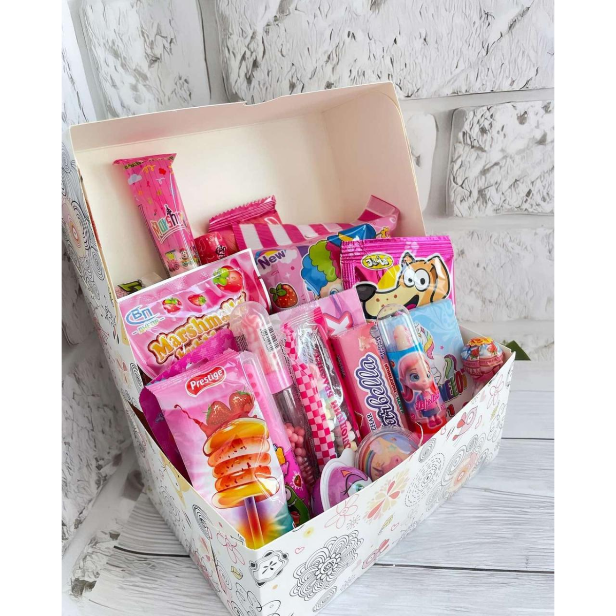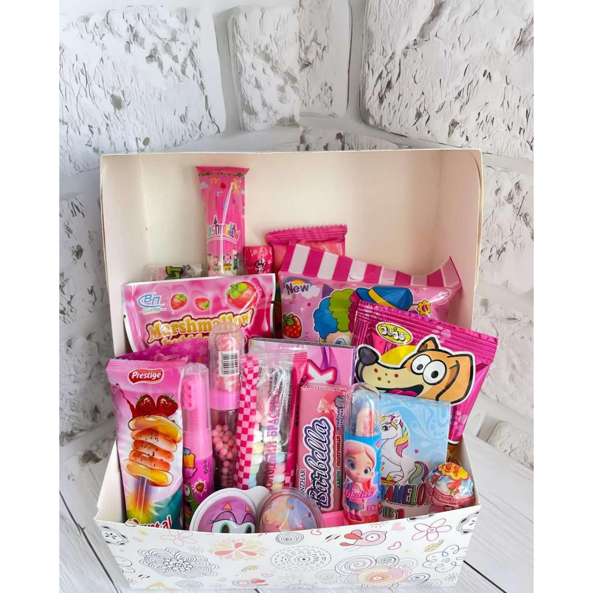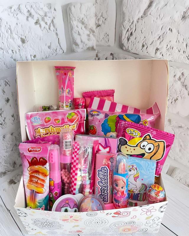 Подарунковий бокс для дівчинки, Сюрприз подарунок, Солодкий бокс для дітей, Смаколики на свято дитині