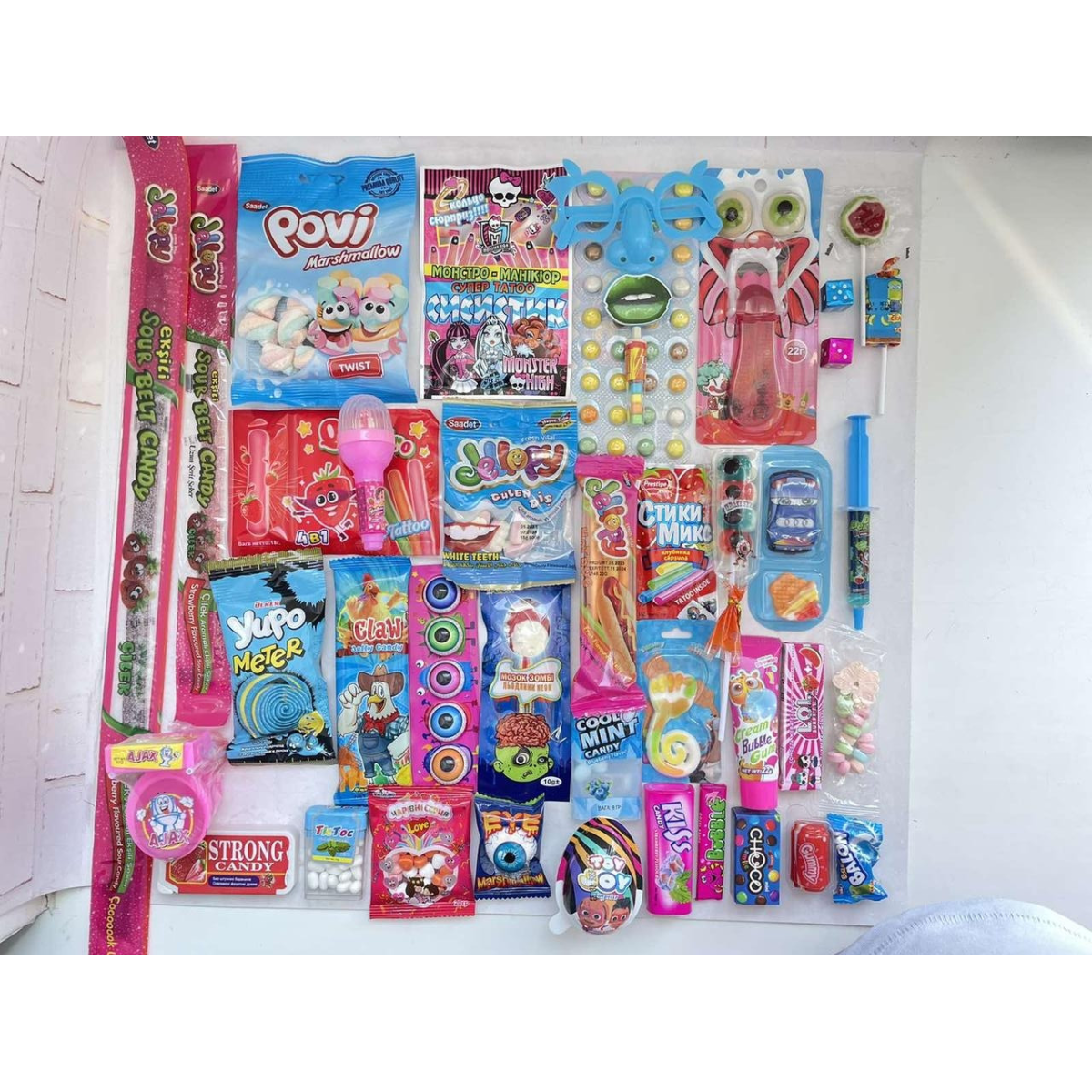 Оригінальна коробка з солодощами для дітей, Подарунок дитині з цукерок та іграшок Світ Бокс