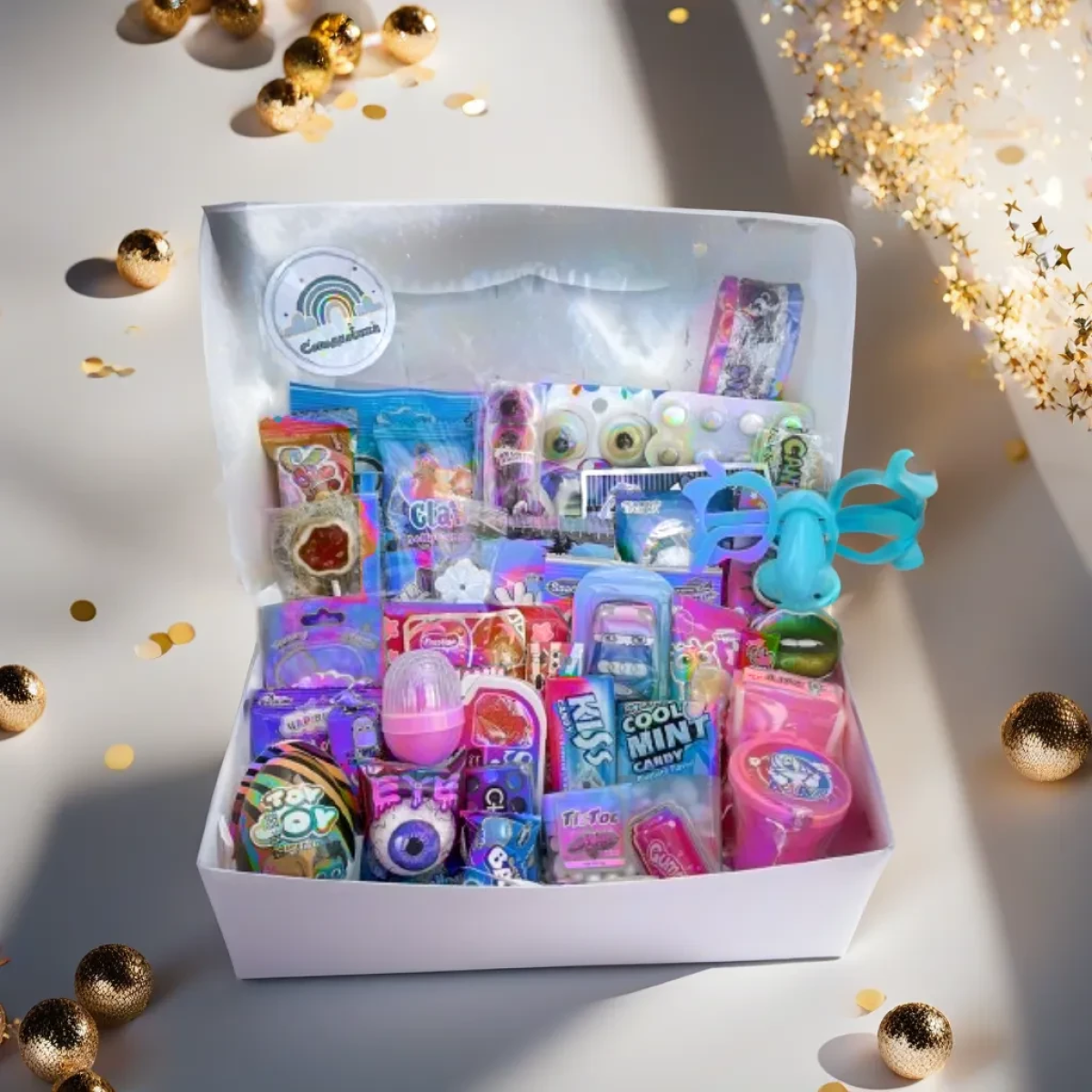 • Яскраве Оформлення: Бокс оформлений у яскравих та грайливих кольорах, створюючи святковий настрій та візуальне захоплення.