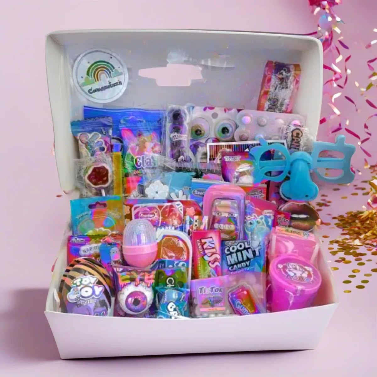 Цей подарунковий бокс – не тільки смачний сюрприз, а й справжній калейдоскоп веселки та радості. Він чудово підходить для свят, дитячих вечірок та особливих моментів, наповнених веселощами та посмішками.