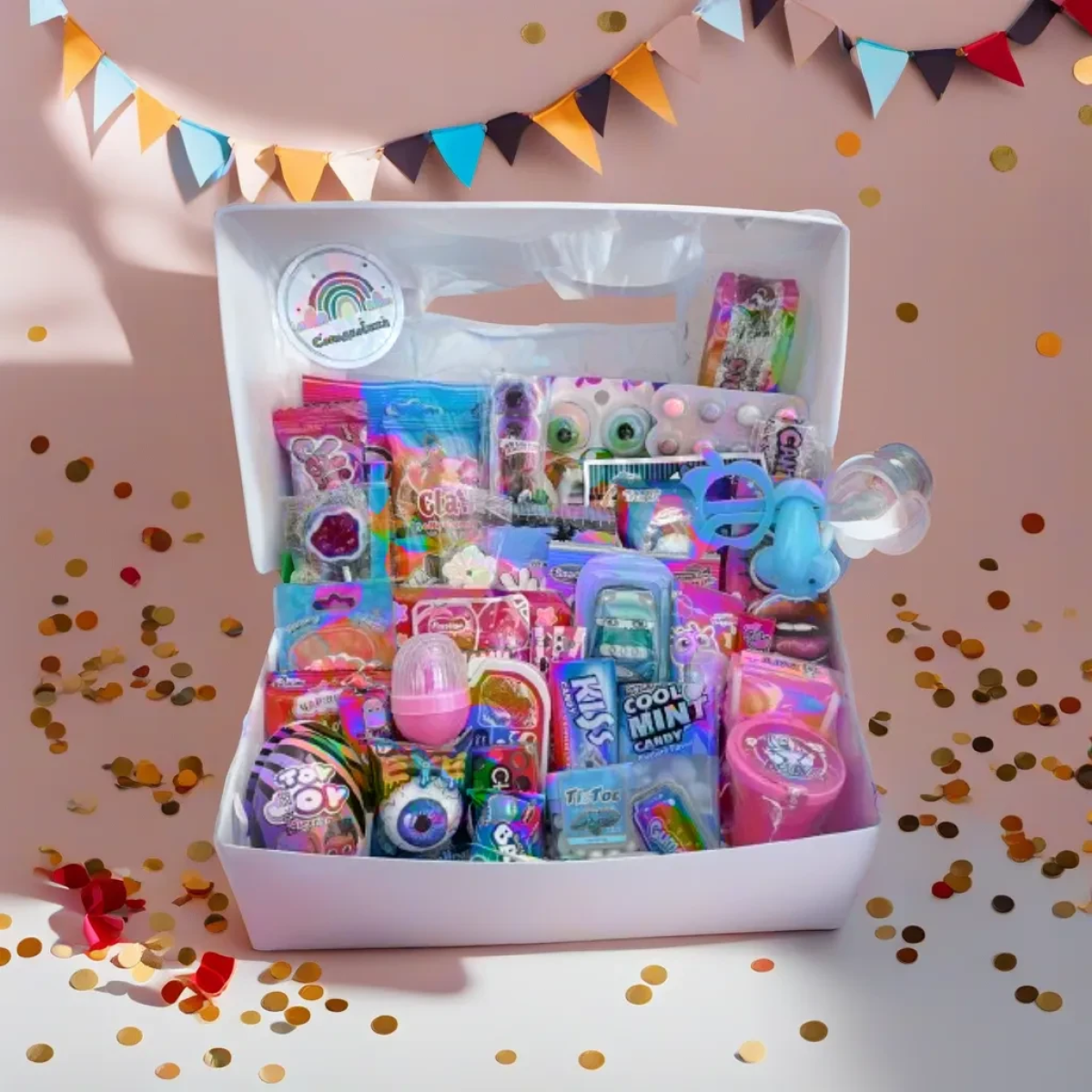 • Яскраве Оформлення: Бокс оформлений у яскравих та грайливих кольорах, створюючи святковий настрій та візуальне захоплення.
