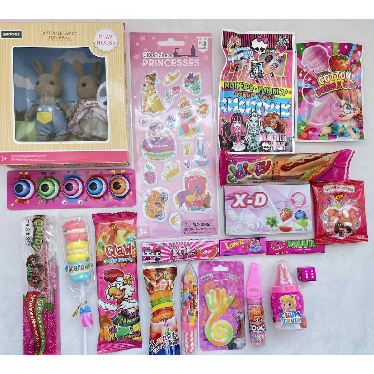 Великий бокс з іграшками та солодощами для дівчинки, Подарунок на день народження, Смаколики на свято дитині