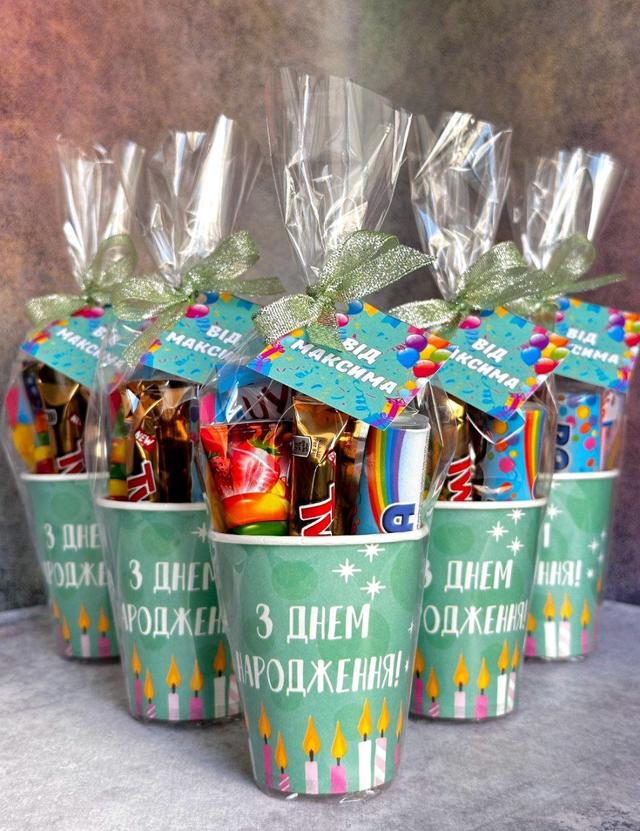 Подарунковий набір із солодощами для дітей — це не просто солодкі частування, а й справжнє диво та радість. Цей подарунок дозволяє дітям насолоджуватися смачними солодощами у яскравій та креативній упаковці. Він створює святковий настрій і є чудовим способом висловити турботу та любов до дитини. Подарункова склянка стане незабутнім сюрпризом, який радує та надихає на святкові веселощі у колі друзів та однокласників.