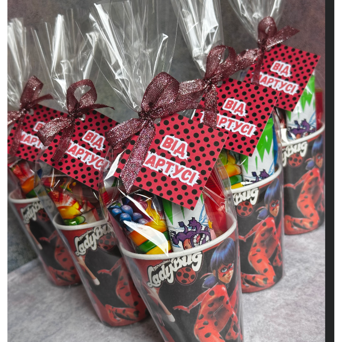 • Різноманітність Солодких частування: Включає різноманітні солодкі частування, такі як цукерки, шоколадки, льодяники та інші смачні сюрпризи.
