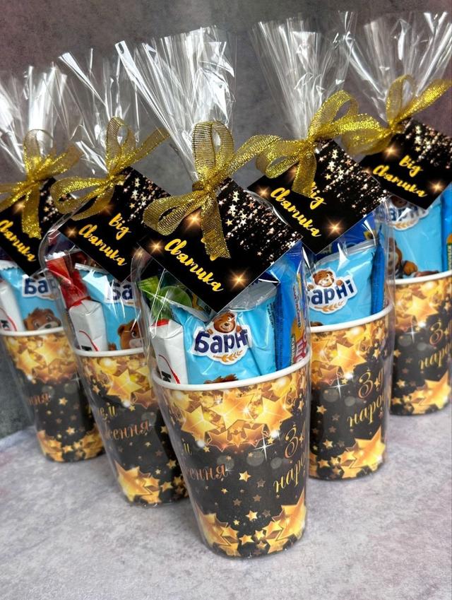 Подарунковий набір із солодощами для дітей — це не просто солодкі частування, а й справжнє диво та радість. Цей подарунок дозволяє дітям насолоджуватися смачними солодощами у яскравій та креативній упаковці. Він створює святковий настрій і є чудовим способом висловити турботу та любов до дитини. Подарункова склянка стане незабутнім сюрпризом, який радує та надихає на святкові веселощі у колі друзів та однокласників.