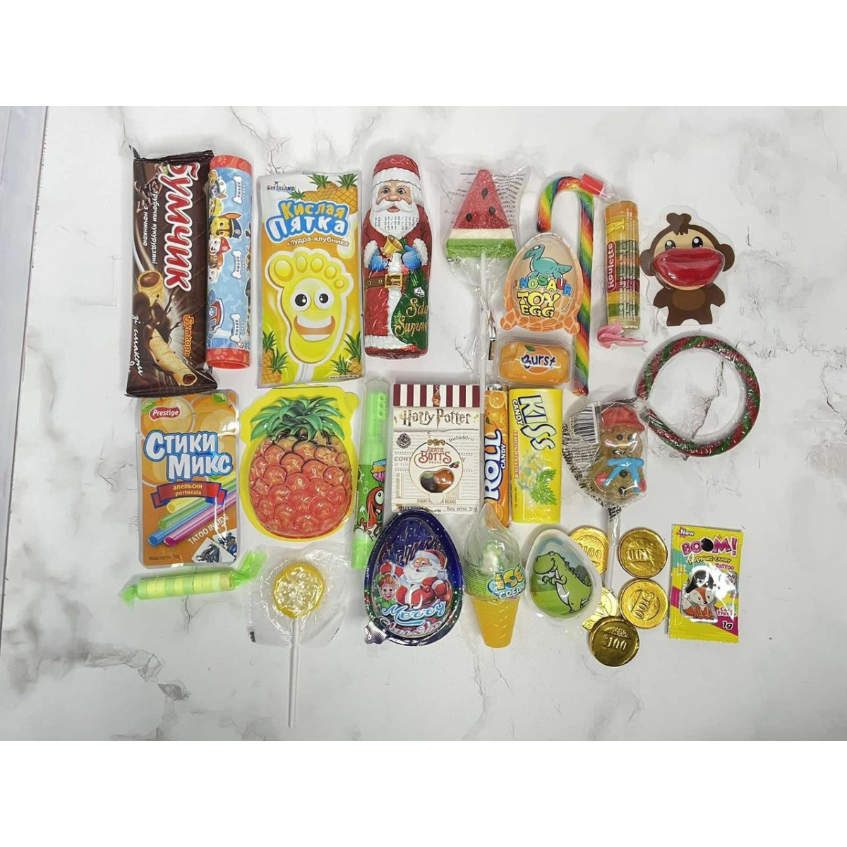 • Різноманітність Солодких Частування: Включає різноманітні солодкі частування, такі як цукерки, шоколадки, льодяники та інші смачні сюрпризи.