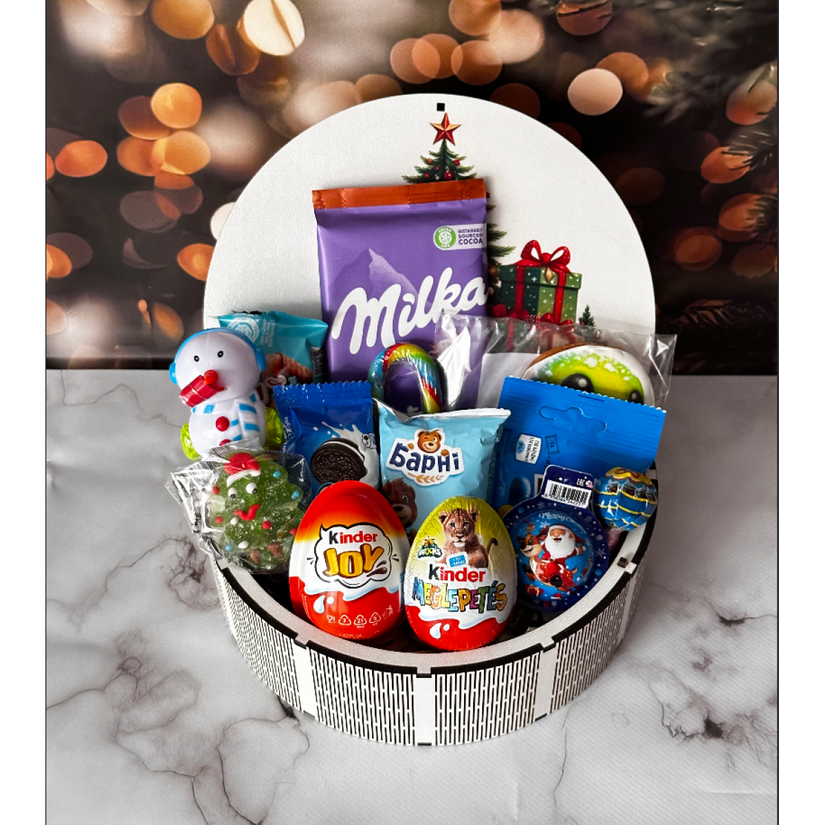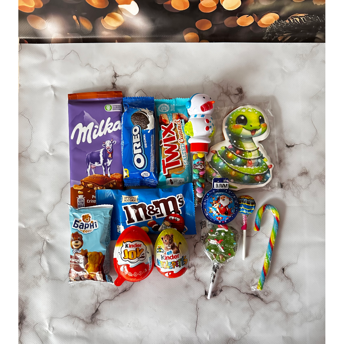 Новорічний набір солодощів красива подарункова коробка цукерок та шоколадок.