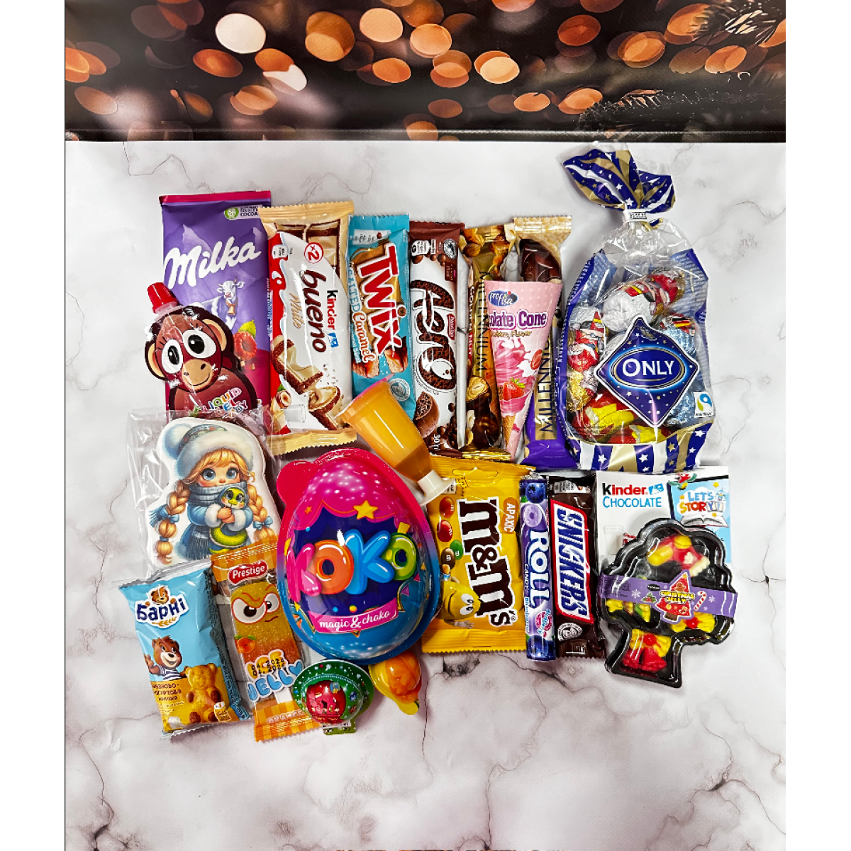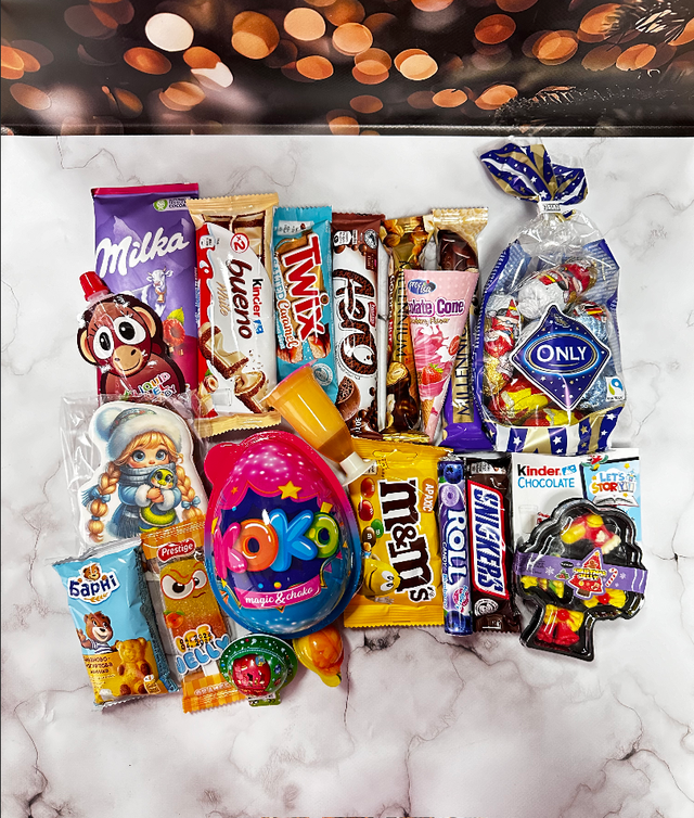 Солодкий нобір красива подарункова коробка цукерок та шоколадок новорічний подарунок для дитини