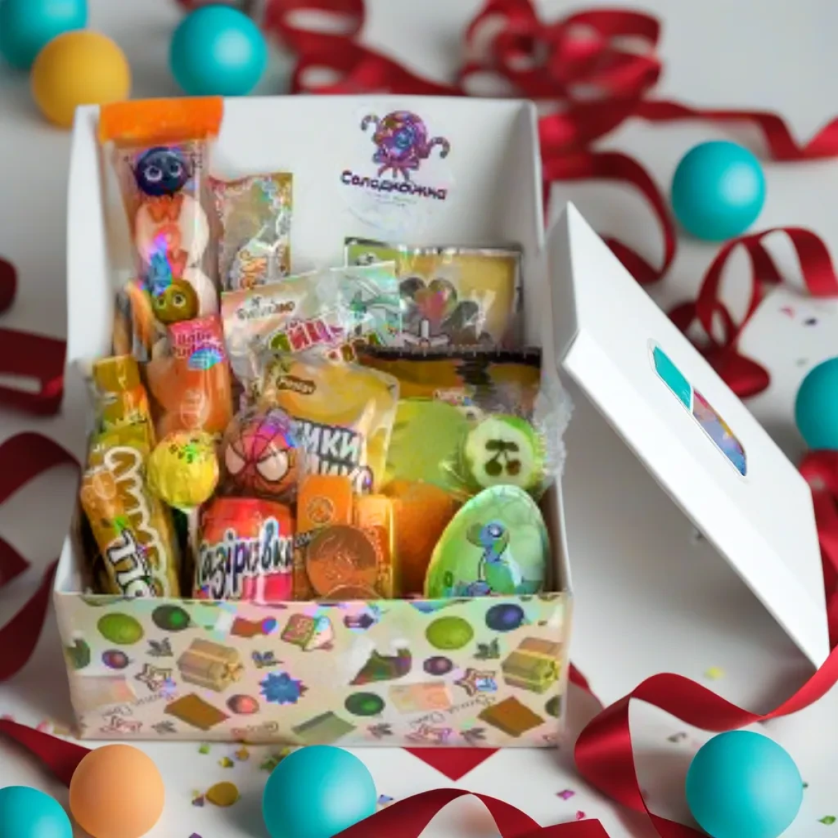 Цей чарівний подарунковий бокс – справжній рай для маленьких ласунів. Усередині ви знайдете різноманітність найсмачніших сюрпризів, створених спеціально для дітей: