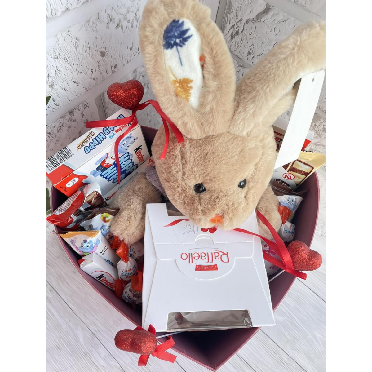 Пориньте у світ ніжності та солодких моментів з нашим подарунковим боксом. Ця елегантна коробка поєднує у собі вишукані солодощі та м'яку іграшку, щоб створити незабутній подарунок для вашої половинки.