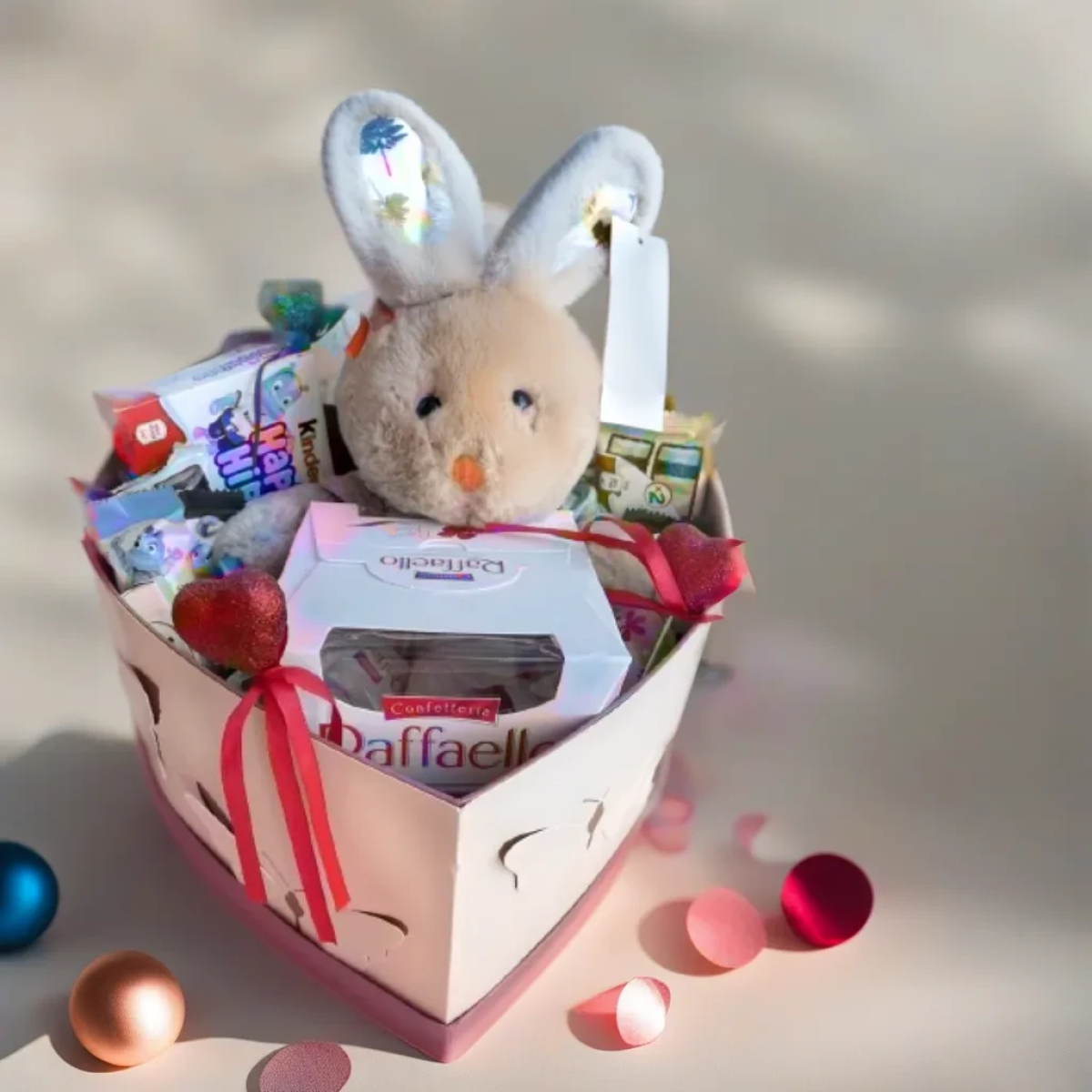 Пориньте у світ ніжності та солодких моментів з нашим подарунковим боксом. Ця елегантна коробка поєднує у собі вишукані солодощі та м'яку іграшку, щоб створити незабутній подарунок для вашої половинки.
