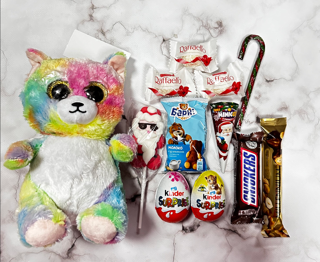• Різноманітність Солодких Частування: Включає різноманітні солодкі частування, такі як цукерки, шоколадки, льодяники та інші смачні сюрпризи.