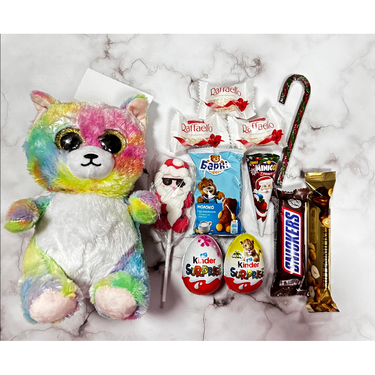 • Яскраве Оформлення: Бокс оформлений у яскравих та грайливих кольорах, створюючи святковий настрій та візуальне захоплення.