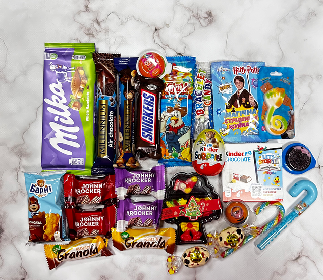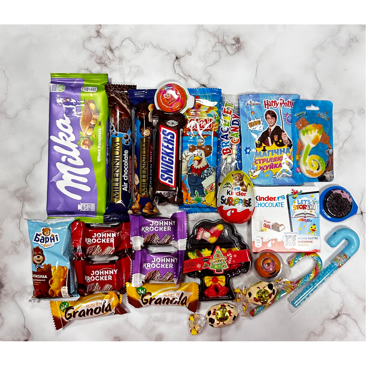 • Різноманітність Солодких Частування: Включає різноманітні солодкі частування, такі як цукерки, шоколадки, льодяники та інші смачні сюрпризи.