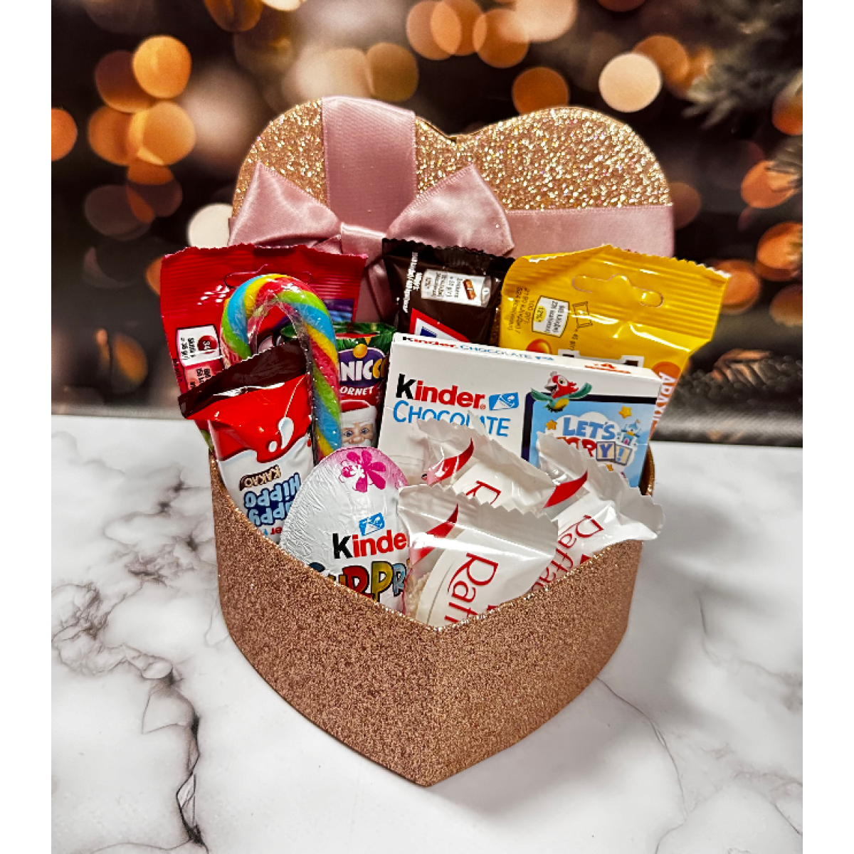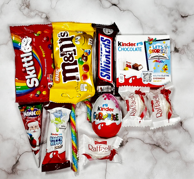 • Різноманітність Солодких Частування: Включає різноманітні солодкі частування, такі як цукерки, шоколадки, льодяники та інші смачні сюрпризи.