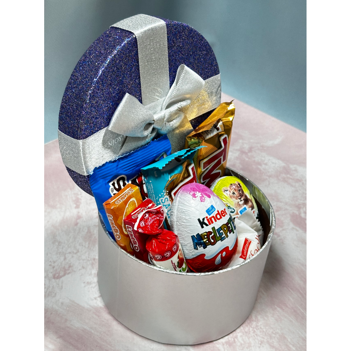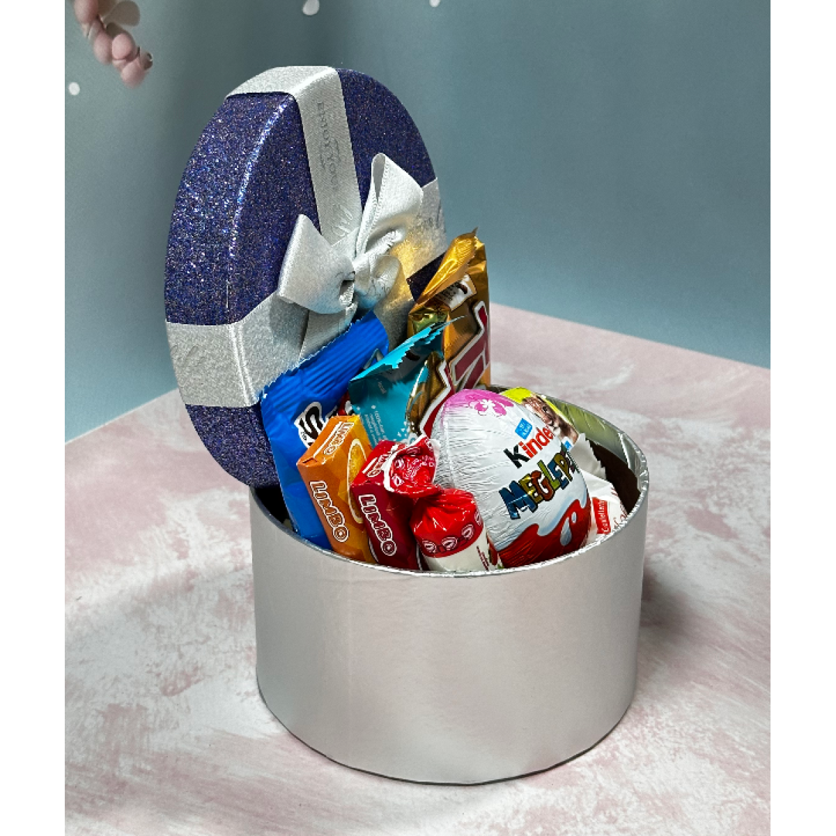 Набір цукерок Love is набір солодощів подарунковий бокс з бантиком 19*12*7 см