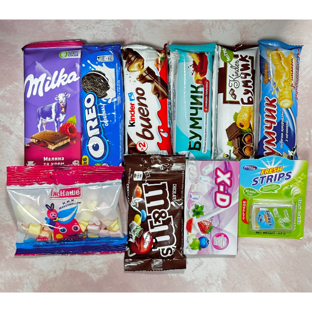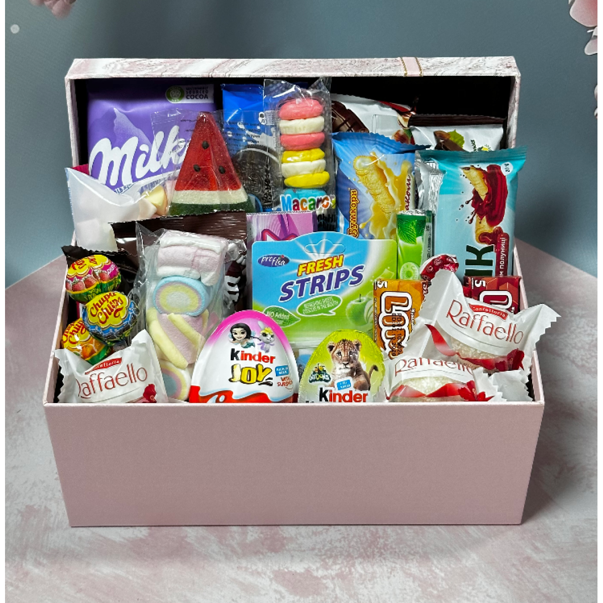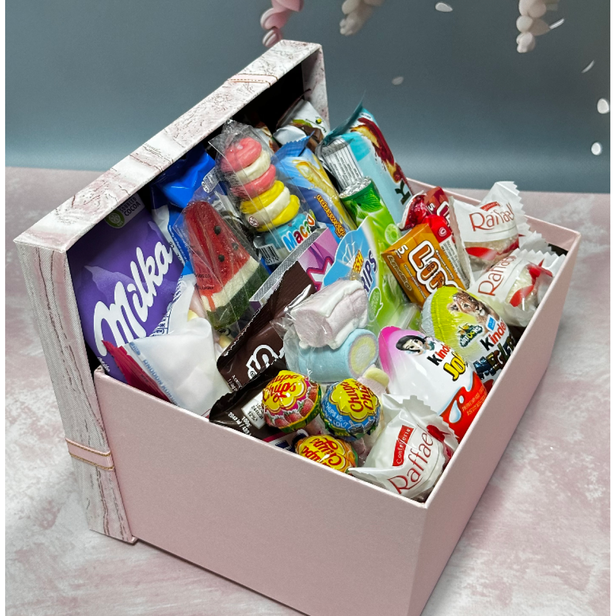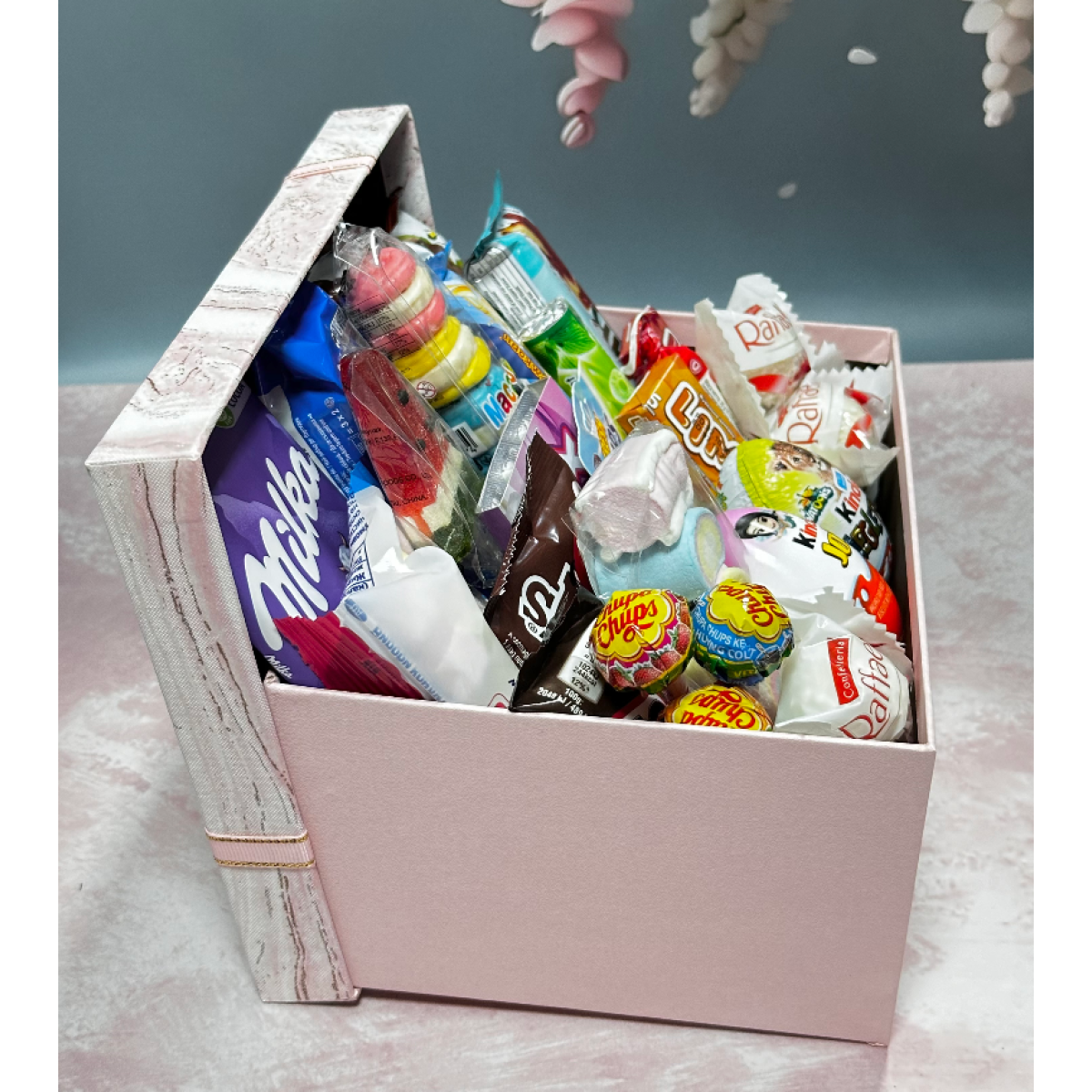 Подарунковий набір солодощів у барвистій упаковці набір цукерок на подарунок коханій людині 23*16*10 см