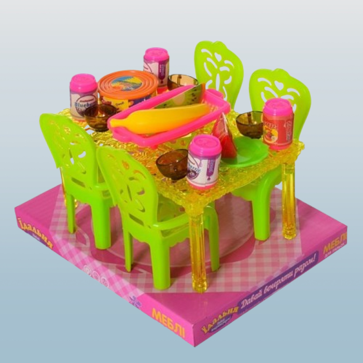 - Стіл та Стільці: Комплект включає міцний пластиковий стіл і кілька стільців, спеціально розроблених для розмірів ляльок, що робить гру більш цікавою і реалістичною.